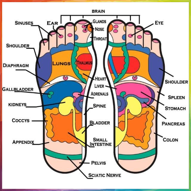 Alle organen, spieren en klieren hebben een reflexpunt op de voet, dit punt staat in verbinding met een bepaald deel van het lichaam.